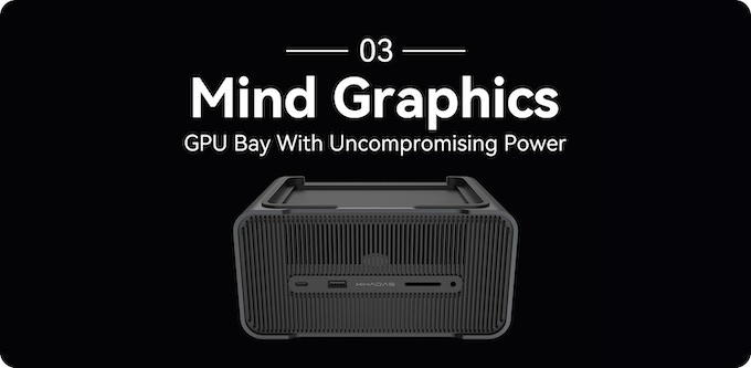 Dockがある……というだけではただの面白いPCだなというところに落ち着くでしょうが、このPCはさらにGPU付きのDockも存在します。 Mind Graphicsという名称です。