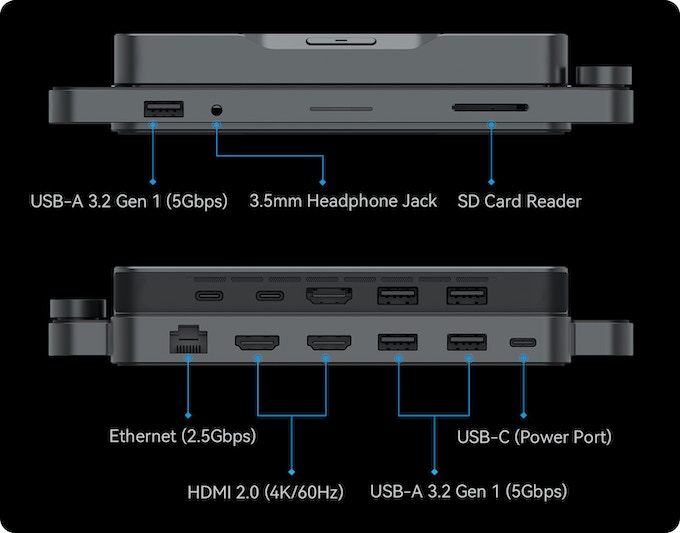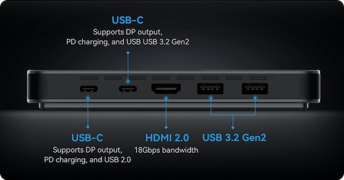 こちらもDockとほぼ同じポートを実現。USB-AとUSB-C(USB4)がそれぞれ一つずつ増えます。給電は流石にType-CからACポートになりました。