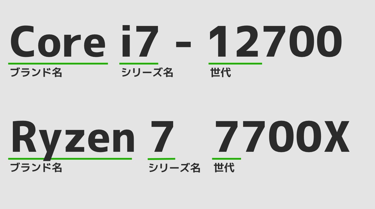 Core iシリーズにしろRyzenシリーズにしろ、その他の文字はあんまり気にしないでください。